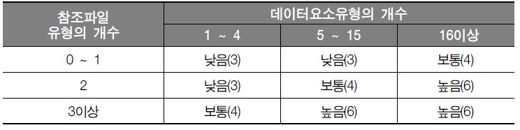 - 외부입력(EI) 복잡도 및 기능점수 가중치